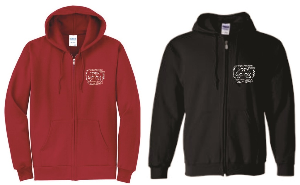 Port Company full zip hooded sweatshirt is 7.8 oz 50/50 cotton/polyester with two ply-hood, dyed to match drawcords, and front pockets