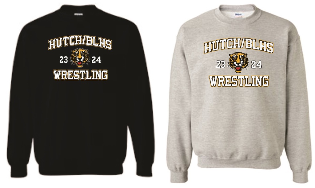 Gildan 9 0z 50/50 cotton/polyester black or grey crew neck sweatshirt